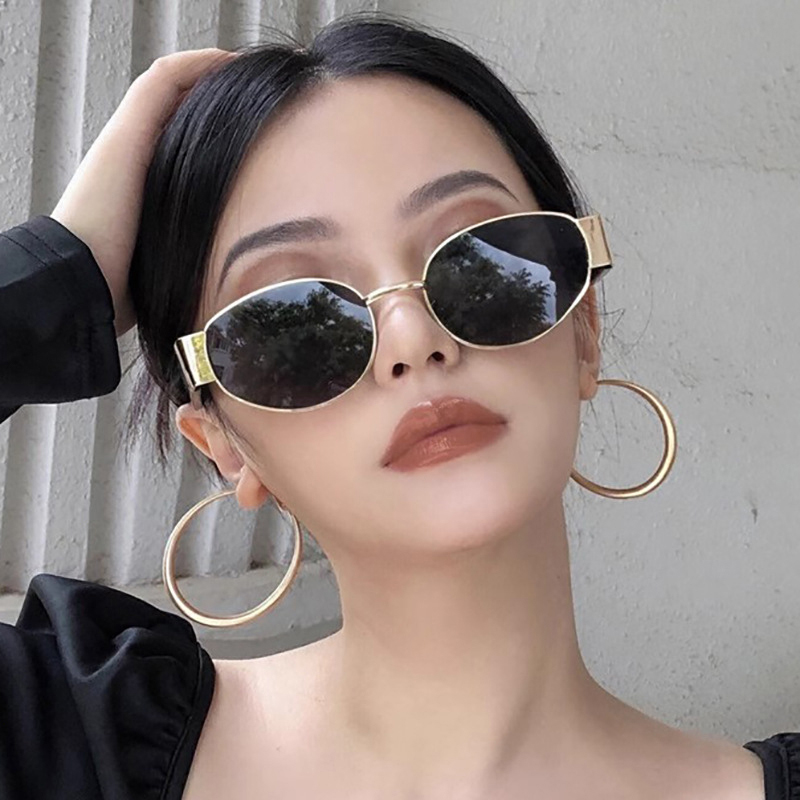 18K Gold Plated Trendy Luxury Oval Sunglasses