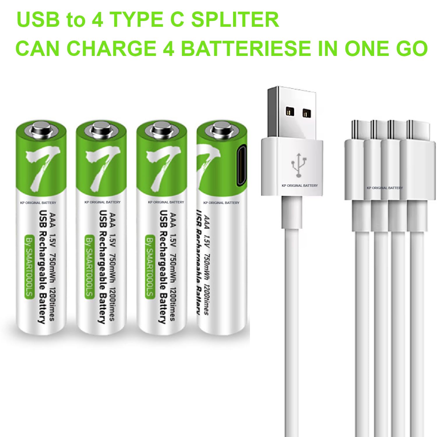 AAA সাইজ 750mWh রিচার্জেবল ব্যাটারি প্যাক – 8 পিস সেট (Type-C)