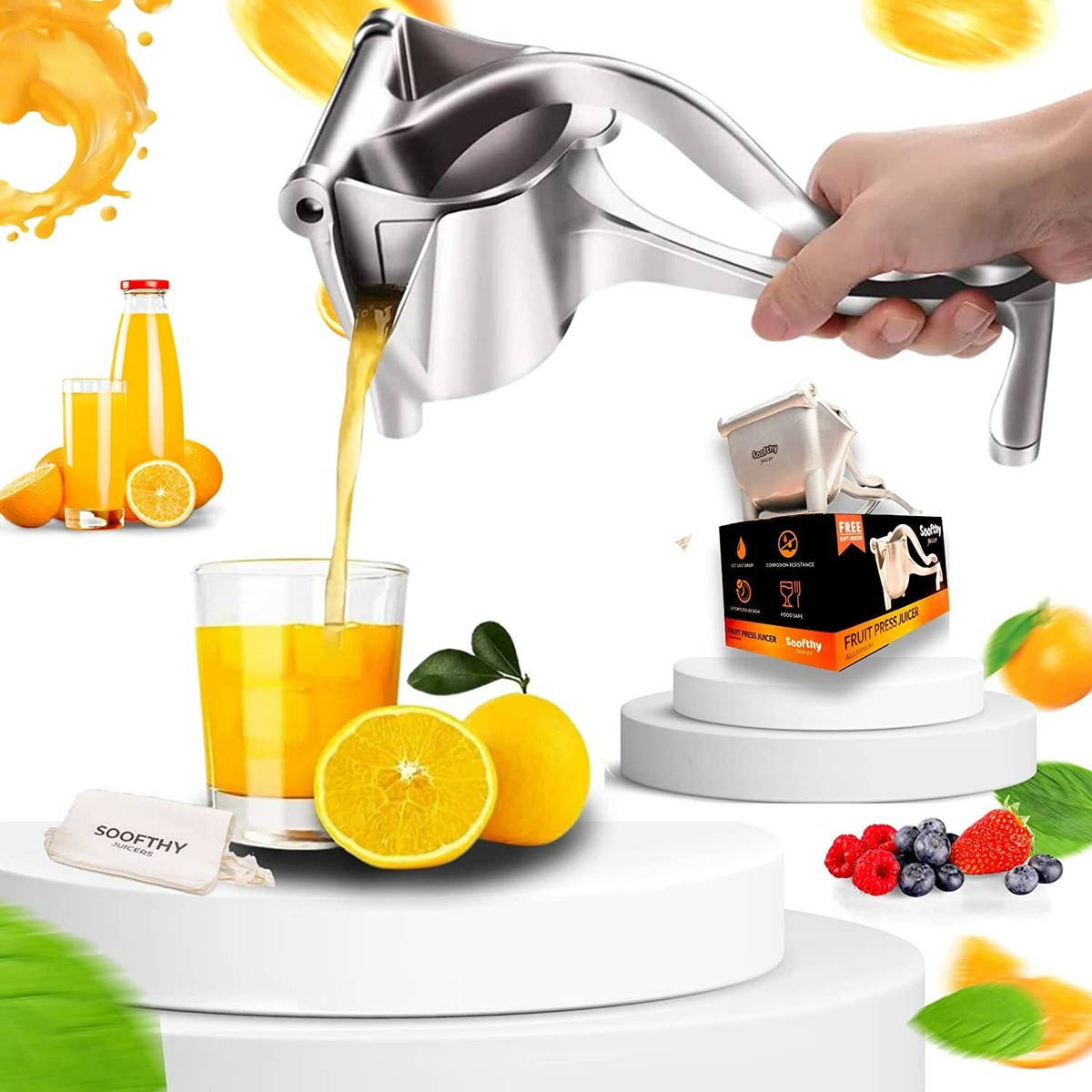 Hand Press Manual Juicer Fruit Machine হলো একটি শক্তপোক্ত ও ব্যবহার সহজ ফলের রস বের করার মেশিন, যা লেবু, কমলা, মাল্টা, ডালিম, আঙুর, আপেলসহ বিভিন্ন ফল থেকে দ্রুত ও সহজে সর্বোচ্চ রস সংগ্রহ করতে সাহায্য করে।