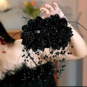 গাঢ় কালো ফুলের ডিজাইনের সঙ্গে ব্ল্যাক ক্রিস্টাল বিডস, যা আপনার লুকে যোগ করবে লাক্সারি ও ক্লাসি ভাইব।