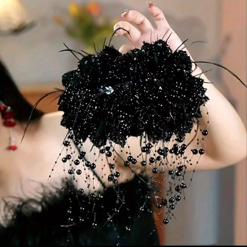 গাঢ় কালো ফুলের ডিজাইনের সঙ্গে ব্ল্যাক ক্রিস্টাল বিডস, যা আপনার লুকে যোগ করবে লাক্সারি ও ক্লাসি ভাইব।