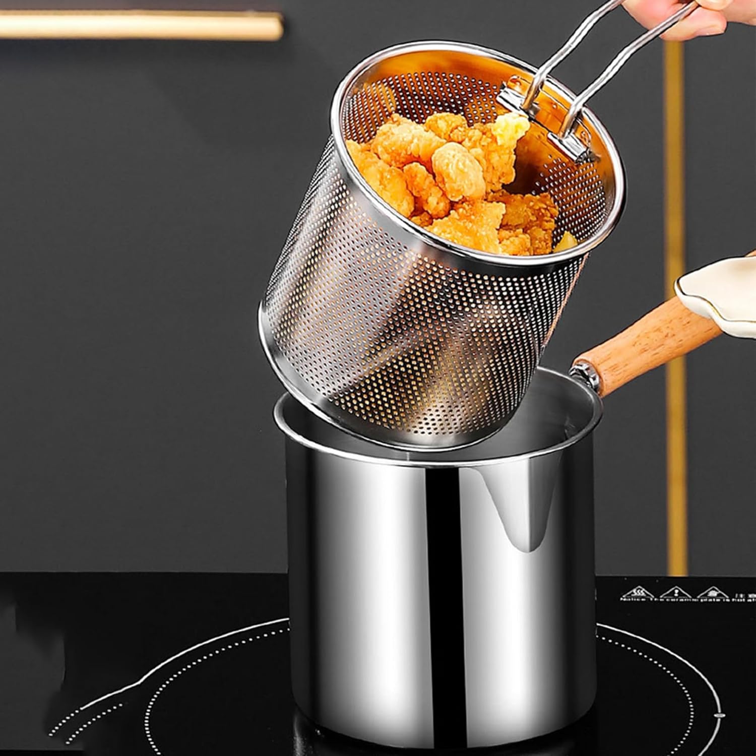 ✅ ফ্রাইং বাস্কেট ও টং হ্যান্ডেলসহ, খাবার তোলা ও নামানো সহজ